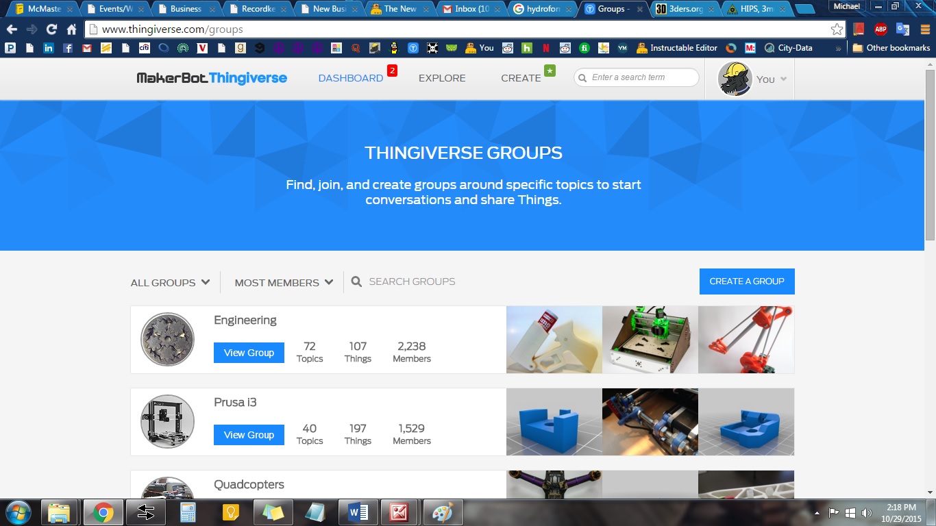 I have another example from the ‘Engineering’ group I started on Thingiverse. (Oddly enough that group has become the largest one on the largest website of 3d printing files. This is my ridiculous claim to fame.) I asked the group an open question: “Does your employer have a 3D printer & what do you use it for?”