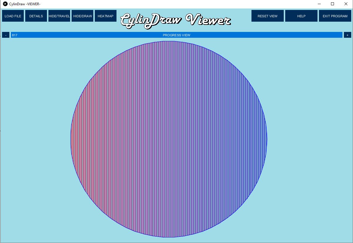 Here I’ve illustrated the tool path of a hatched circle and I set the line color to linearly change from red to blue as the drawing progresses for visualization purposes. It looks exactly how you would expect.