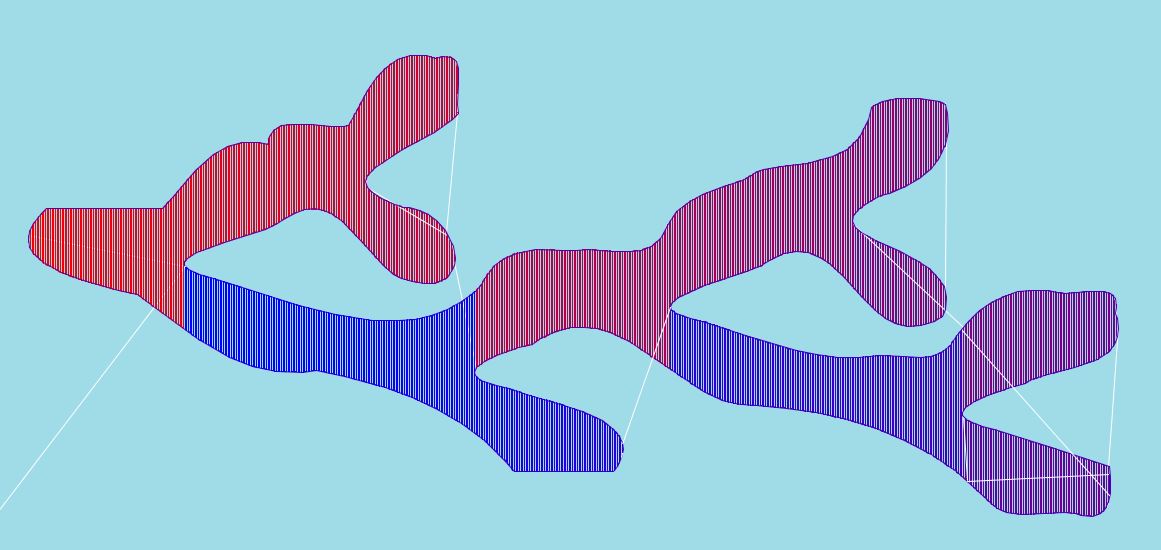 - …unless the number of points found in a slice is different than the number found on the previous slice. In that case create however many new lists (groups of sequential points) necessary so that each group is only getting two new points per blue slice line.