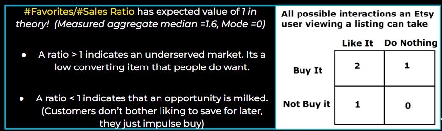 I used my database to look at the median Favorites to Sales ratio across thousands of listings and I filtered by product categories to ensure the data sets were random.